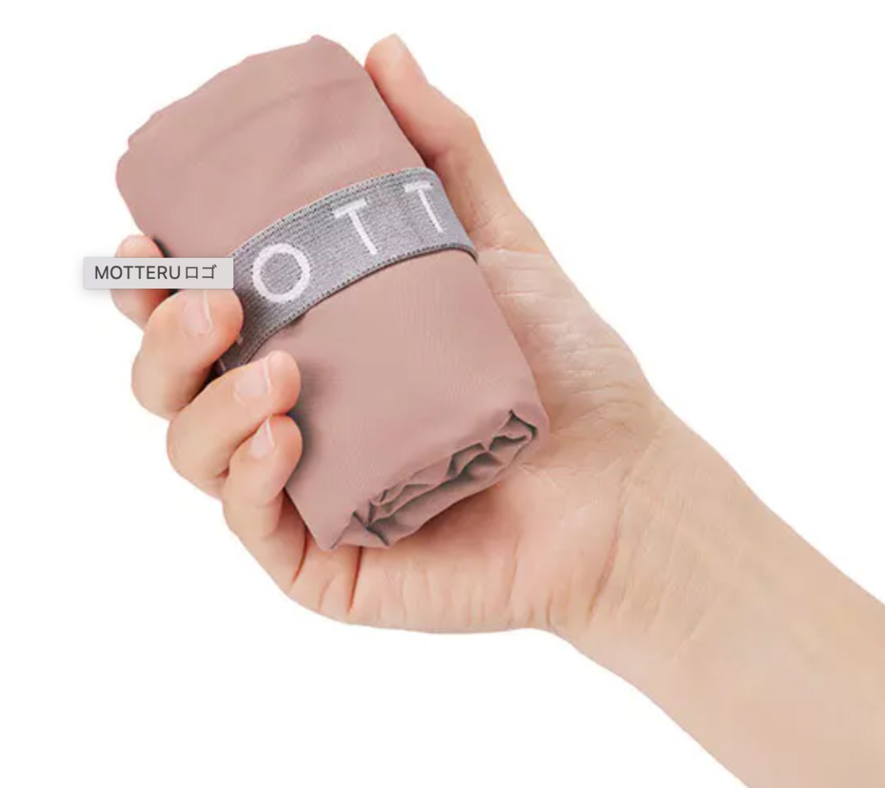 バッグの入り口に付いているゴムバンドで留めると、手のひらにおさまるコンパクトサイズになるのでサブバッグやエコバッグにぴったり。